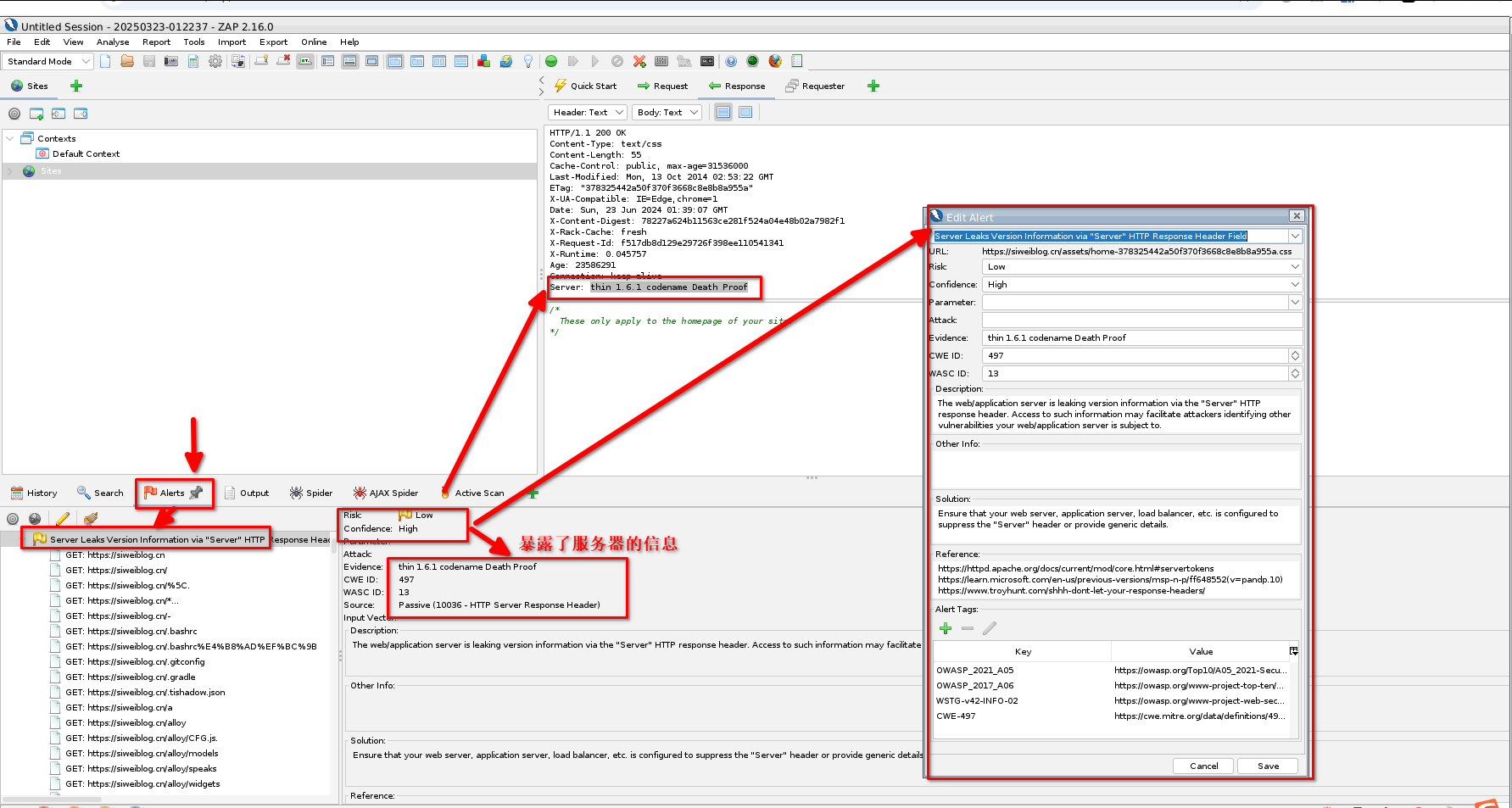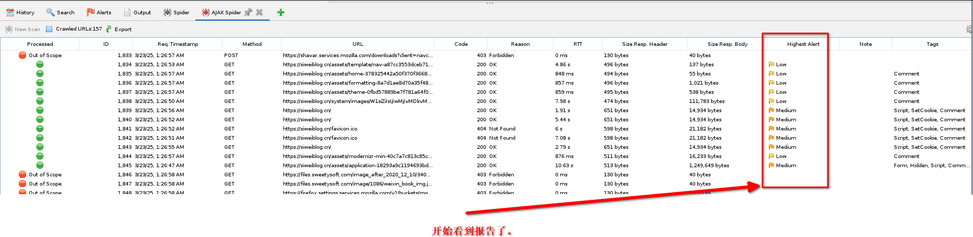 (在docker 内)zap-full-scan.py -t https://siweibug.cn