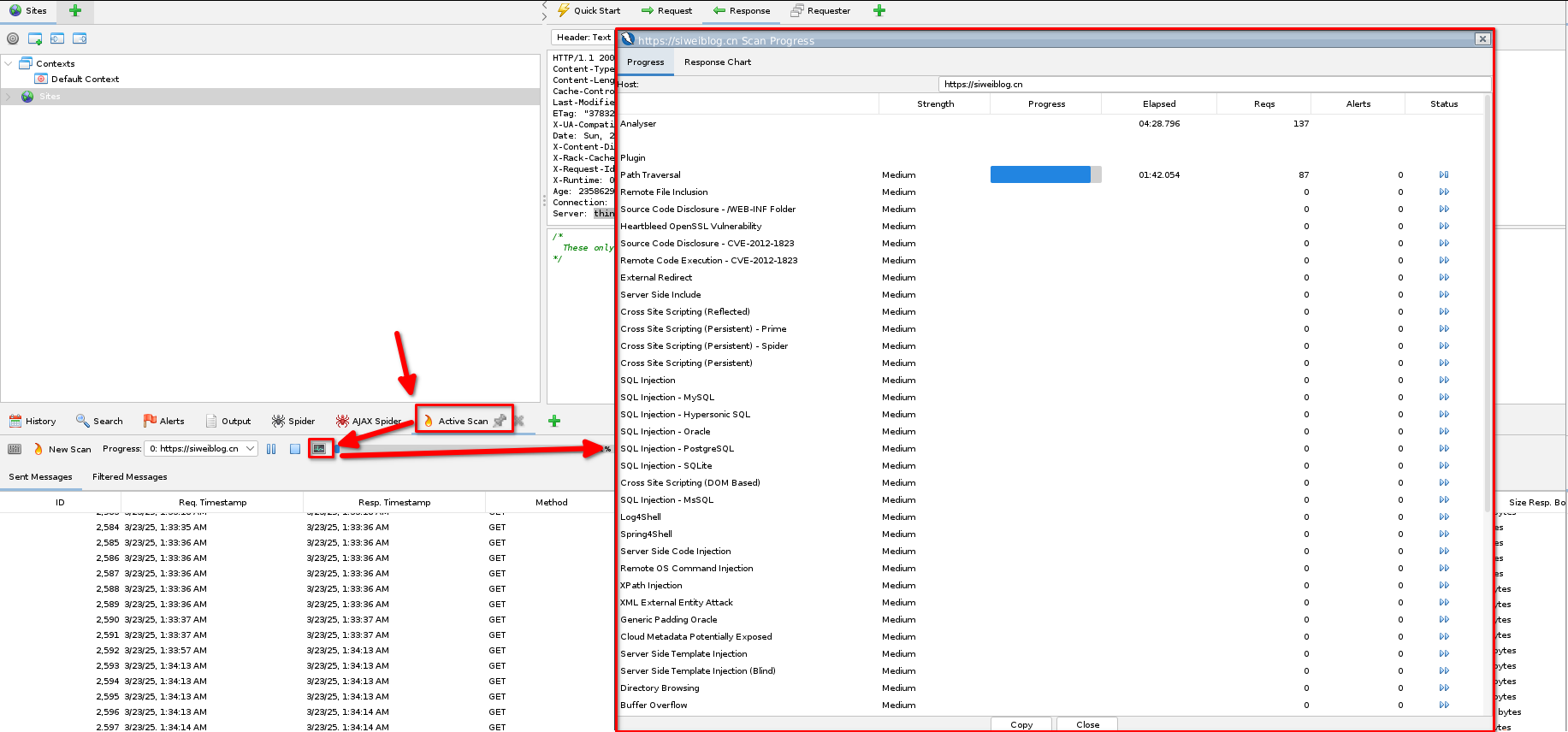 - **`curl` 命令**: 通过 ZAP API 触发主动扫描。