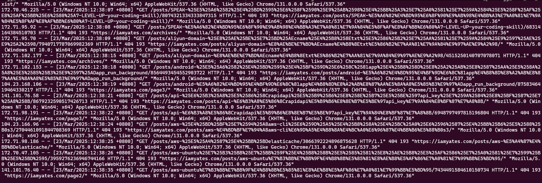 在后台日志就可以看到被频繁扫描了。