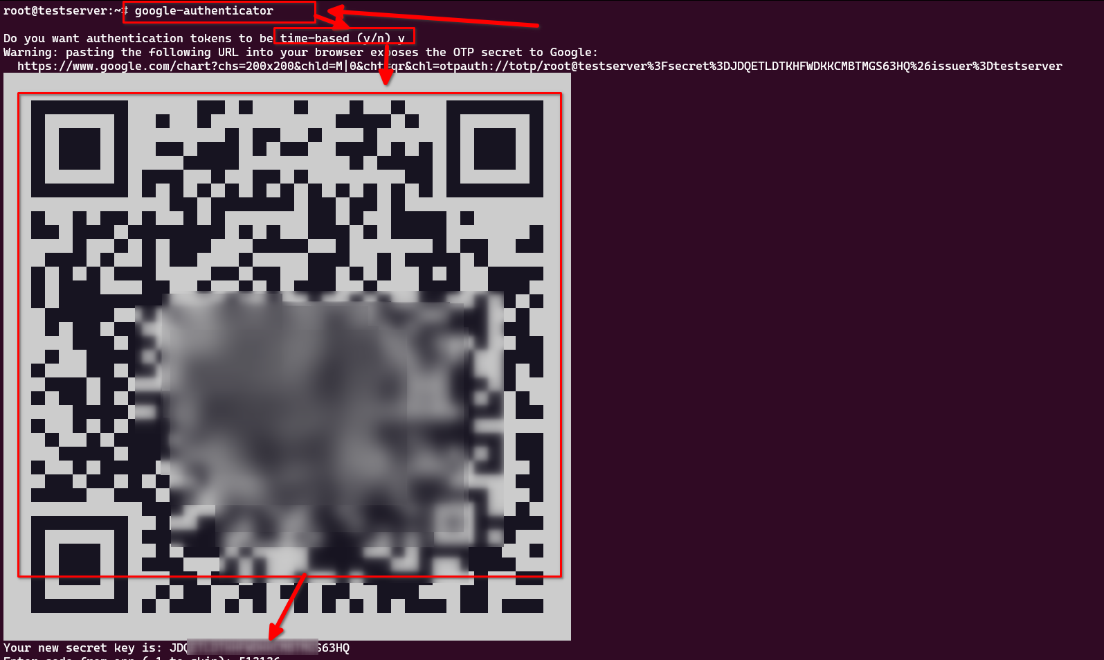 5. 命令行中,$ google-authenticator